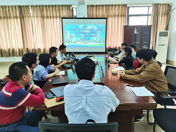 参加此次会议人员有广东职业技术学院信息工程学院副院长黄旺华、网络专业负责人许燕及多名网络团队老师,金数据技术教研室主任徐剑波、驻校运营经理何雅静。