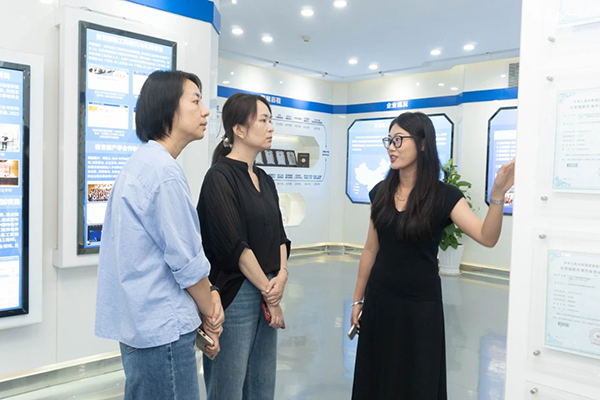 拜访领导第一时间参观了金数据技术展厅,对金数据技术的开展历程、业务模块、经营理念、合作成果等内容进行深入分析,对金数据技术构建人才培养“三循环”生态模式、深度参与高校课程改革、引入职业认证等举措表示赞同。