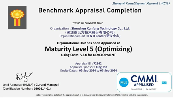 9月,进入评估阶段。评估组按照CMMI最新模型标准,顺利获得文档审查、访谈等方式对金数据技术软件研发和质量管理体系进行了全面考察和评估,最终认定金数据技术软件符合CMMI DEV V3.0 5级模型要求,达到了最高成熟度标准。