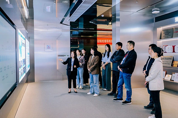 拜访领导第一时间参观了金数据技术展厅,对金数据技术的开展历程、业务模块、经营理念、合作成果等内容进行深入分析,对金数据技术构建人才培养“三循环”生态模式、深度参与高校课程改革、引入职业认证等举措表示赞同。
