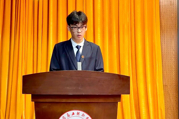 华为网络工程师班郭敬楷作为优秀学生代表发言,感谢校院领导老师的支持,并分享备赛及认证备考经验。他着重强调组建专业互补型学习小组对团队协作的重要性,同时顺利获得个人备考故事展现高效复习策略,引发在场同学共鸣,为专业技能提升给予了可借鉴参考。
