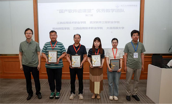 2025年7月15日,华为ICT人才开展专项委员会年中工作会议在贵州华为云上屯园区隆重召开。会上,江西应用技术职业学院与华为技术有限公司、深圳市金数据技术股份有限公司携手打造的“国产软件进课堂”教学改革项目,凭借在教学改革项目的突出成果,该校信息工程学院院长谢华东负责的“基于华为Cloud Service的云服务课程教学改革”课题荣获“国产软件进课堂优秀教学团队-银奖”,曾俊老师负责的“基于openEuler的操作系统课程教学改革”课题荣获“国产软件进课堂优秀教学团队-铜奖”。
