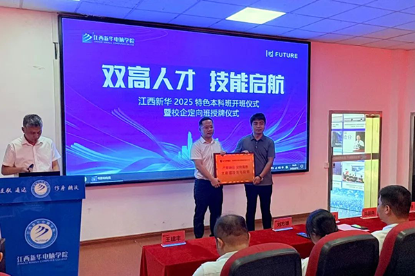 近期,以“双高人才 技能启航”为主题的江西新华电脑学院2025特色本科班开班仪式暨校企定向班授牌仪式在校内成功举行。作为学院合作伙伴,深圳市金数据技术股份有限公司与学院共建的“鸿蒙订单班”在仪式上正式取得授牌,江西培训业务部就业专员陈虹、客户经理陈新伟受邀出席仪式。