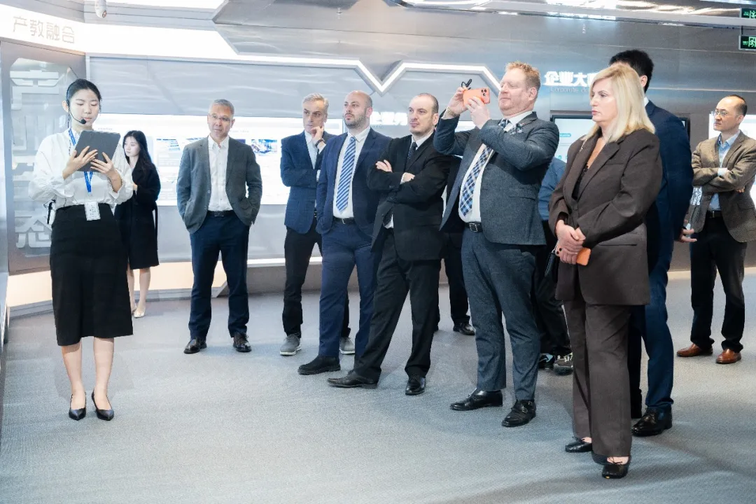 2月11日,格鲁吉亚教育代表团一行莅临金数据技术总部召开考察研讨。代表团成员包括格鲁吉亚创新与技术署主席阿夫坦迪尔·卡斯拉德泽、格鲁吉亚创新与技术署副主席列万·达尔萨利亚、库塔伊西国际大学校长瓦赫坦格·察加雷利、高加索大学副校长伊琳娜·梅柳阿、第比利斯国立大学代表委员会主席弗拉季米尔·马尔格维拉什维利。华为格鲁吉亚政企业务总监周久强、格鲁吉亚政企业务经理塔玛尔·苏提泽、格鲁吉亚产品解决方案高级经理托尔尼凯·卡利亚什维利等领导共同参与本次访问活动。金数据技术总裁刘国锋、副总裁刘铭皓、总工程师丁振强、区域产业学院拓展总监易宜平、解决方案架构师辛保华等公司代表予以热情接待,并陪同参观企业展厅。双方围绕产教融合、校企合作、人工智能课程开发等议题展开了深入研讨。