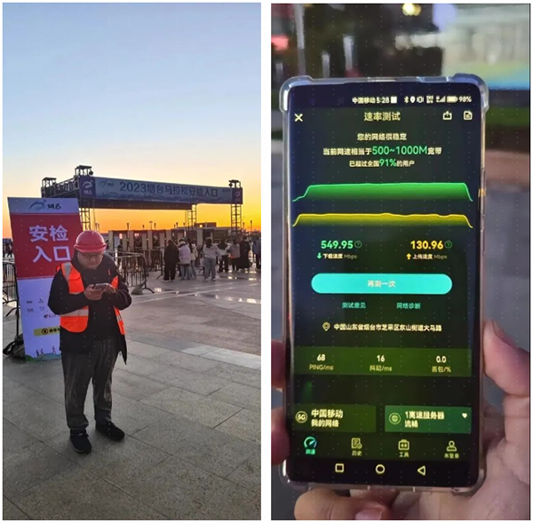 接到活动通知后,金数据技术烟台移动项目组迅速响应,针对比赛起点终点及赛道沿线站点梳理扩容小区,并制定周密保障方案。此次活动共开通6台4G微站,3台4.9GRRU,4G&5G共计扩容小区30个,活动周边道路及停车场共计扩容11个,另外安排专人在活动开始前入场进行测试,并将测试结果实时反馈后台人员进行针对性优化。